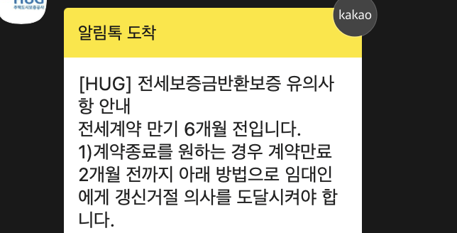 전세 계약 해지 6개월 전 허그에서 연락이 옵니다.